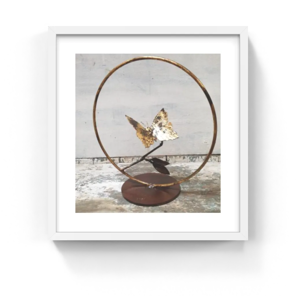 This unique and original contemporary artwork "Papillon sur branche" was created by contemporary artist Nicolas Eres. The artist used metal to create this sculpture of a butterfly.