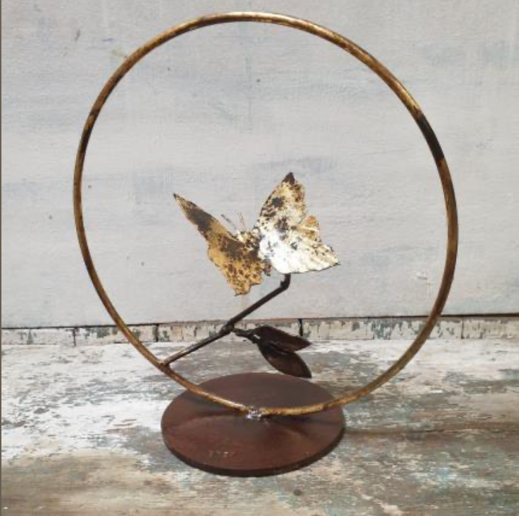 This unique and original contemporary artwork "papillon sur branche" has been created by the contemporary artist Eres Nicolas. The artist used Metal medium with Metal to create this Figurative, Small size sculpture.