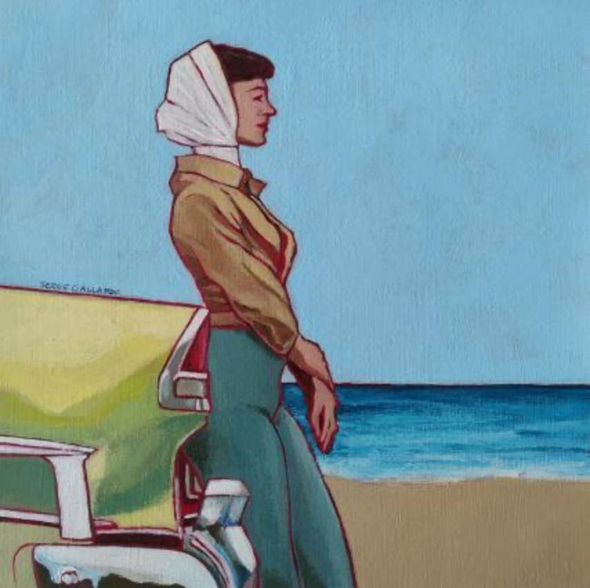 This unique and original contemporary artwork " Pénélope attend..." has been created by the contemporary artist Serge Gallardo. The artist used acrylic medium on canvas to create this figurative, small size painting.