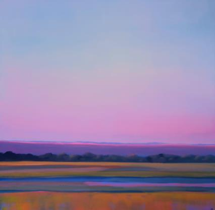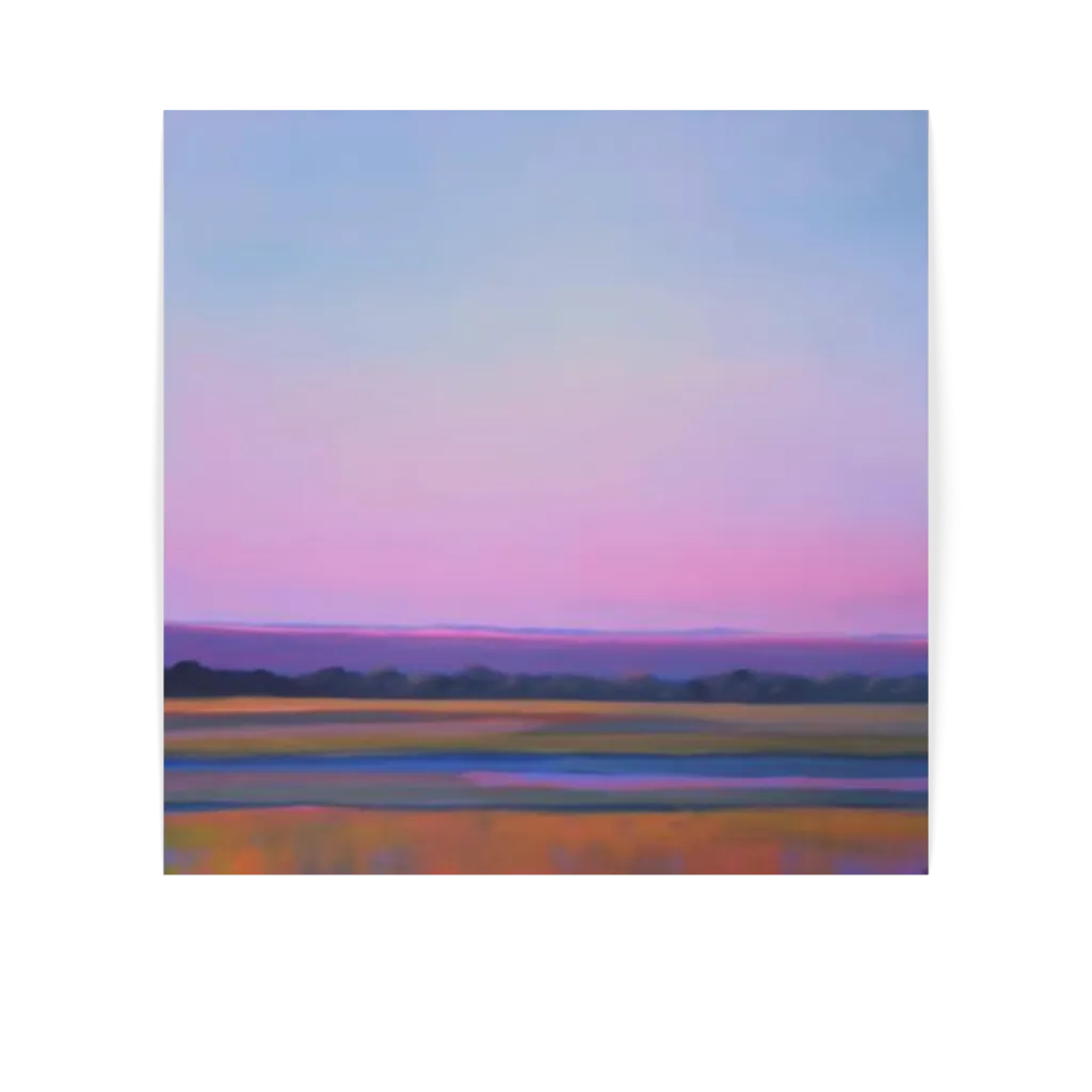 This unique and original contemporary artwork "PINK DAWN" on the subject of landscapes has been created by the contemporary artist Svenja Herz. The artist used acrylic medium on Canvas to create this large landscape painting.