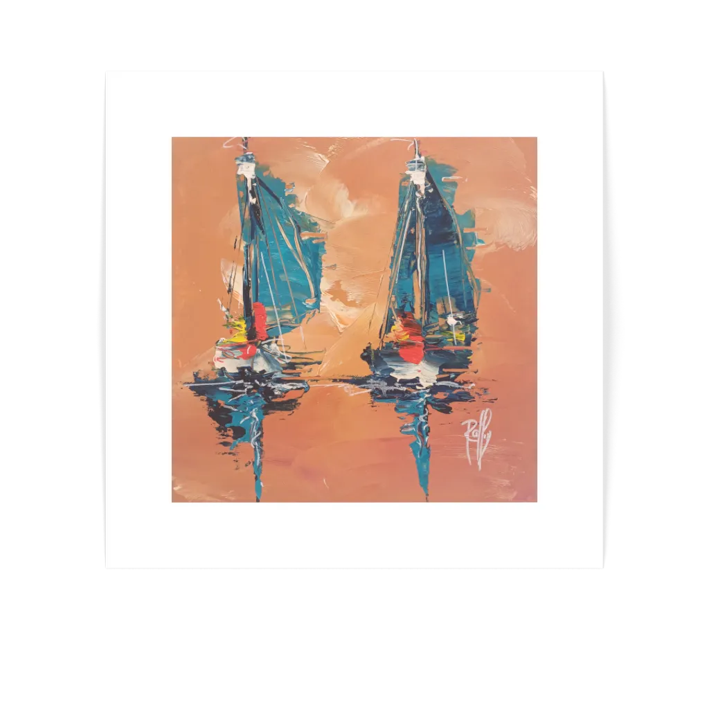 This unique and original contemporary artwork "Plaisance" on the subject of marine has been created by the contemporary artist Christian Raffin. The artist used oil medium on paper to create this figurative, small size painting.