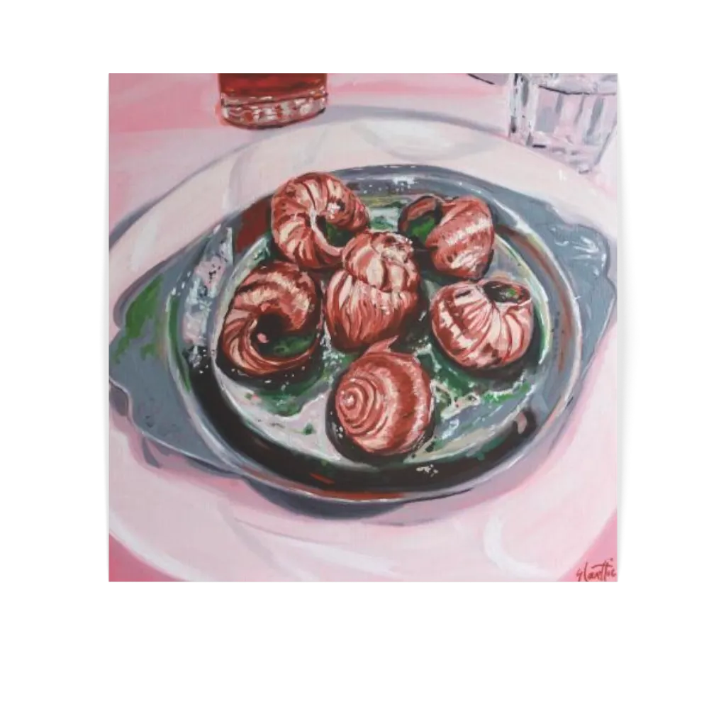 This unique and original contemporary artwork "Plate of 6 Burgundy Snails" on the subjects of Still-life, Life style has been created by the contemporary artist Coueffic Sébastien. The artist used Oil medium on Canvas to create this Figurative, Large size painting.