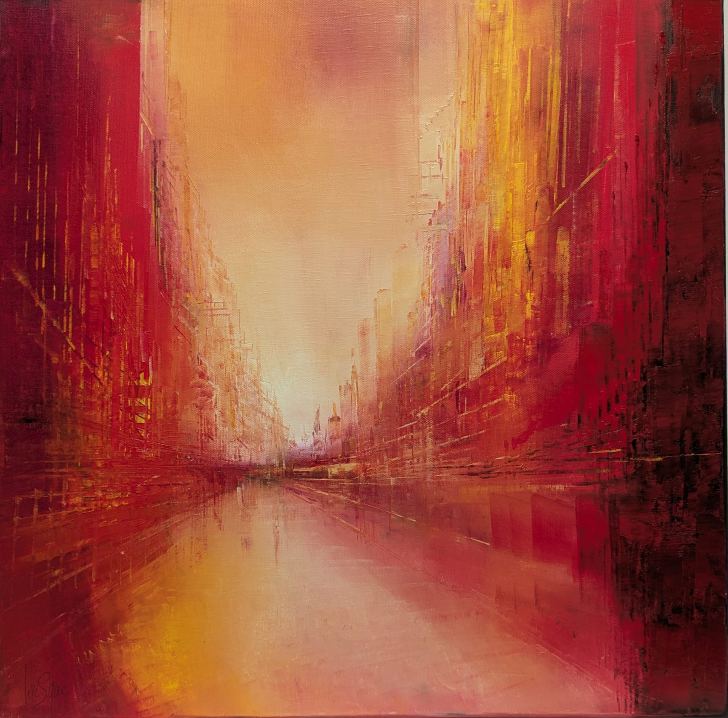 This unique and original contemporary artwork "Red side" has been created by the contemporary artist Emmanuelle Levesque. The artist used oil on canvas to create this large size painting.