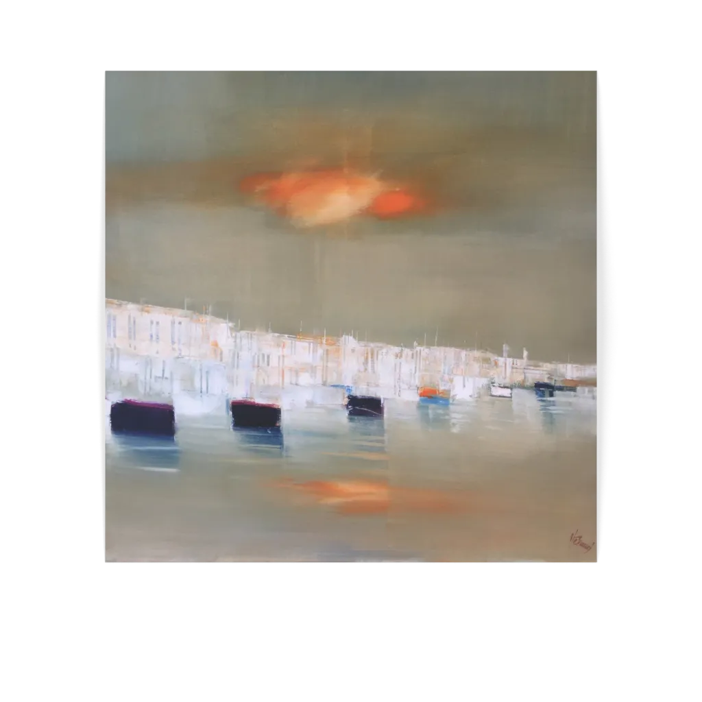 Original artwork "Reflets" by artist Alain Heraud in size 80x80 cm. Medium used is oil on canvas.