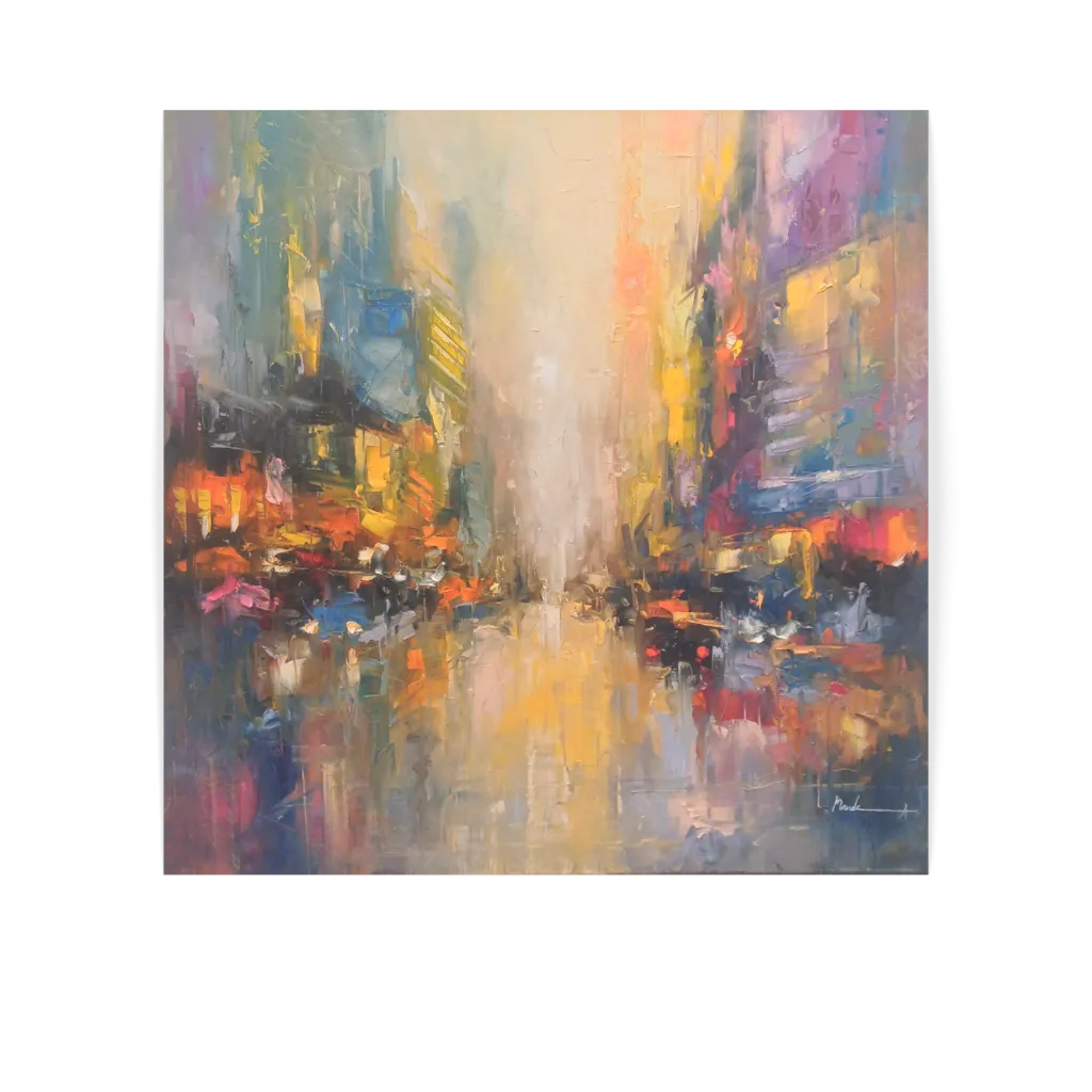 This unique and original contemporary artwork "Shine through" has been created by the contemporary artist Mande. The artist used oil medium on canvas to create this impressionistic city scape.