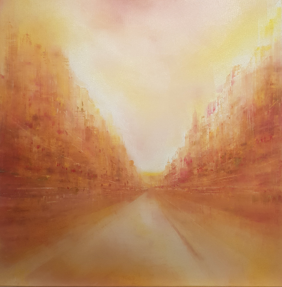 This unique and original contemporary artwork "Soleil Indien" has been created by the contemporary artist Emmanuelle Levesque. The artist used oil on canvas to create this large size painting.