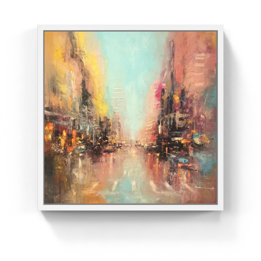 This unique and original contemporary artwork "Street of dreams" has been created by the contemporary artist Mande. The artist used oil medium on canvas to create this impressionistic city scape.