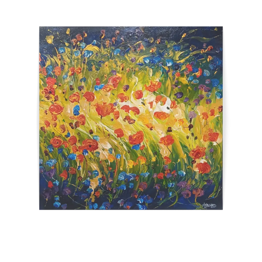 This unique and original contemporary artwork "The blue evening" on the subject of flowers has been created by the contemporary artist Florence Amblard. The artist used acrylic medium on canvas to create this large size painting.