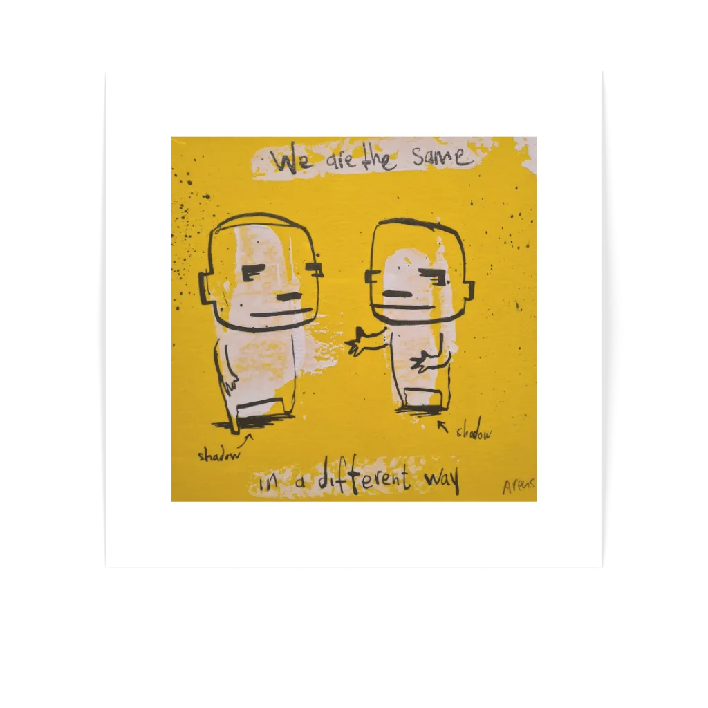 This unique and original contemporary artwork "The same" on the subject of Society has been created by the contemporary artist Jan Hein Arens. The artist used Acrylic, Ink media on Paper to create this Raw art, Small size painting.