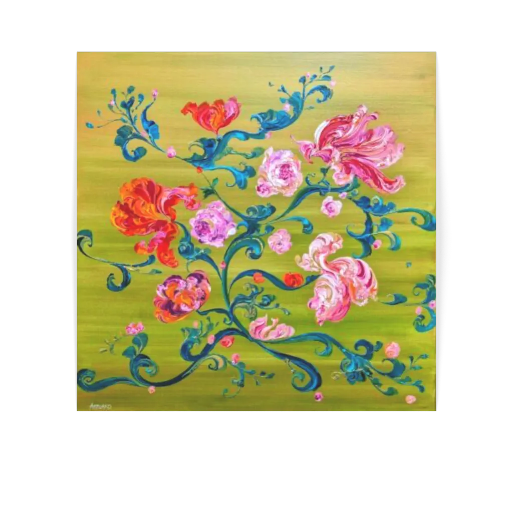 This unique and original contemporary artwork "Tulipes et roses" on the subject of flowers has been created by the contemporary artist Florence Amblard. The artist used acrylic medium on canvas to create this large size painting.