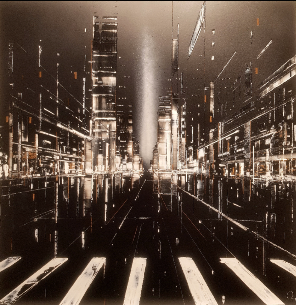 This unique and original contemporary artwork "Uprising" has been created by the contemporary artist Julien Rey. The artist used mixed medium with gold leaf to create this figurative large size painting.