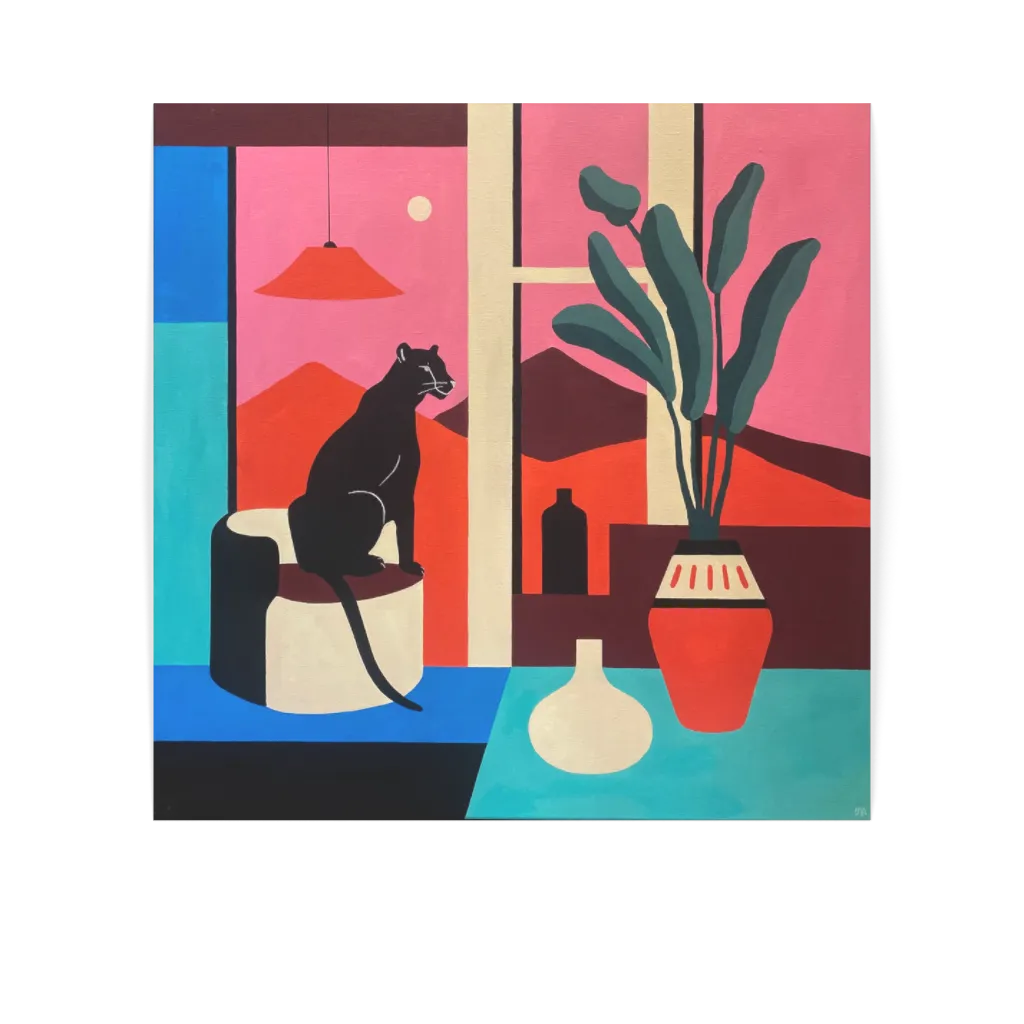 This unique and original contemporary artwork "Urban Oasis" on the subjects of Animals, Still-life, Urban has been created by the contemporary artist Birsak Mariah. The artist used Acrylic medium on Canvas to create this Naive art, Large size painting.