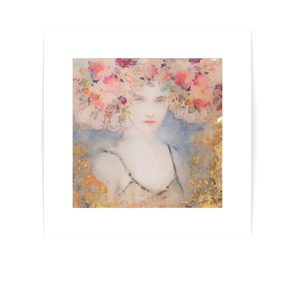 This unique and original contemporary artwork " Vero II" has been created by the contemporary artist Laura Bofill. The artist used Acrylic, Resin, and gold leaf to create this Figurative, Small size painting.