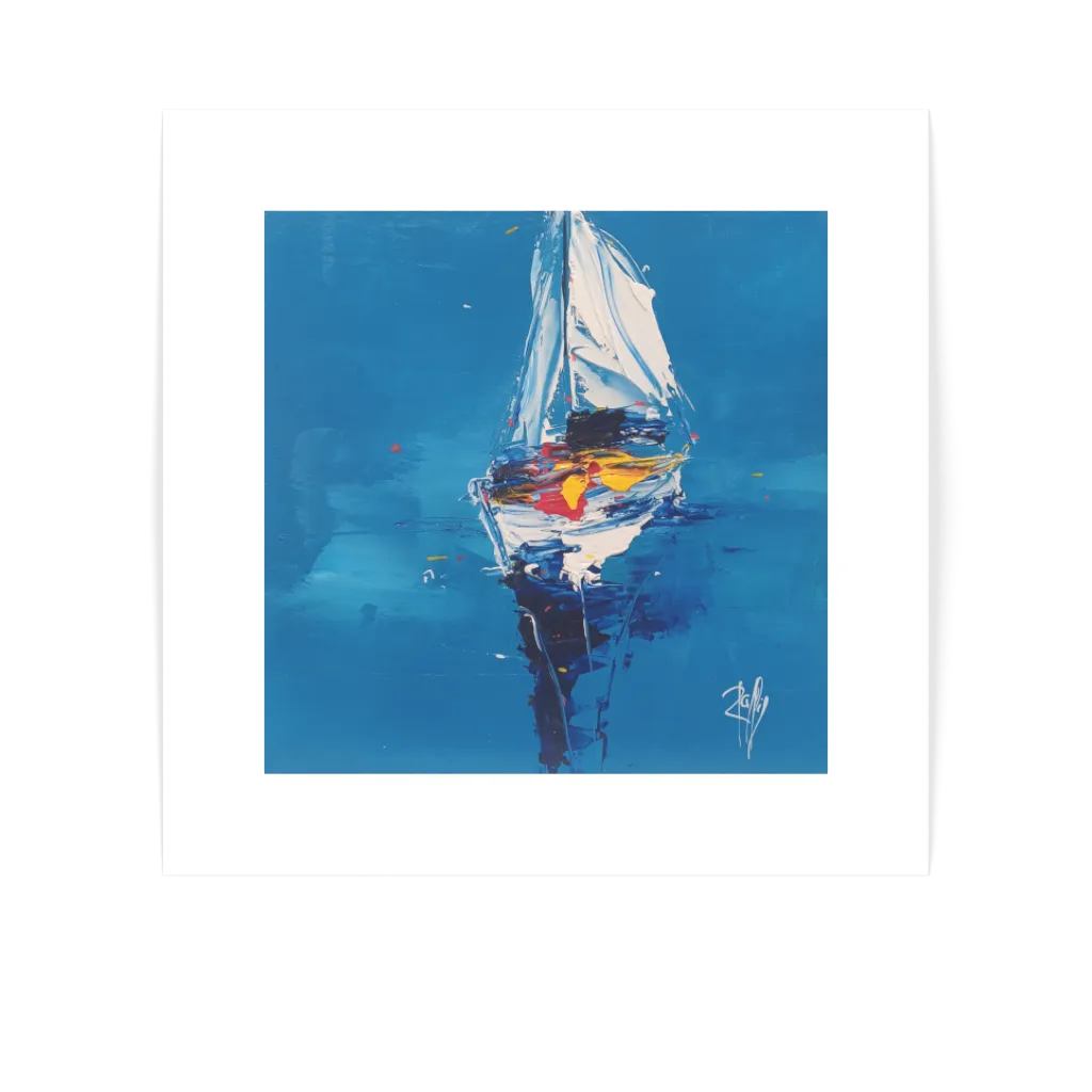 This unique and original contemporary artwork "Voilier" on the subject of marine has been created by the contemporary artist Christian Raffin. The artist used oil medium on paper to create this figurative, small size painting.